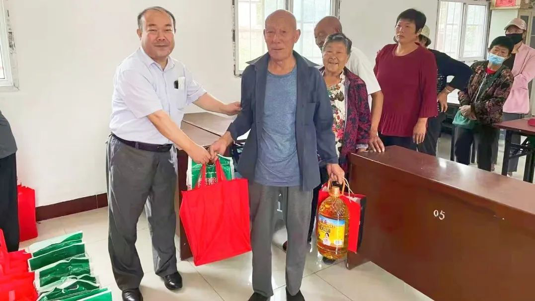 此次活動共為聶莊村26位貧困戶、老黨員、生活困難人員捐贈了月餅、大米、油和酒,讓他們能夠安心過中秋節。